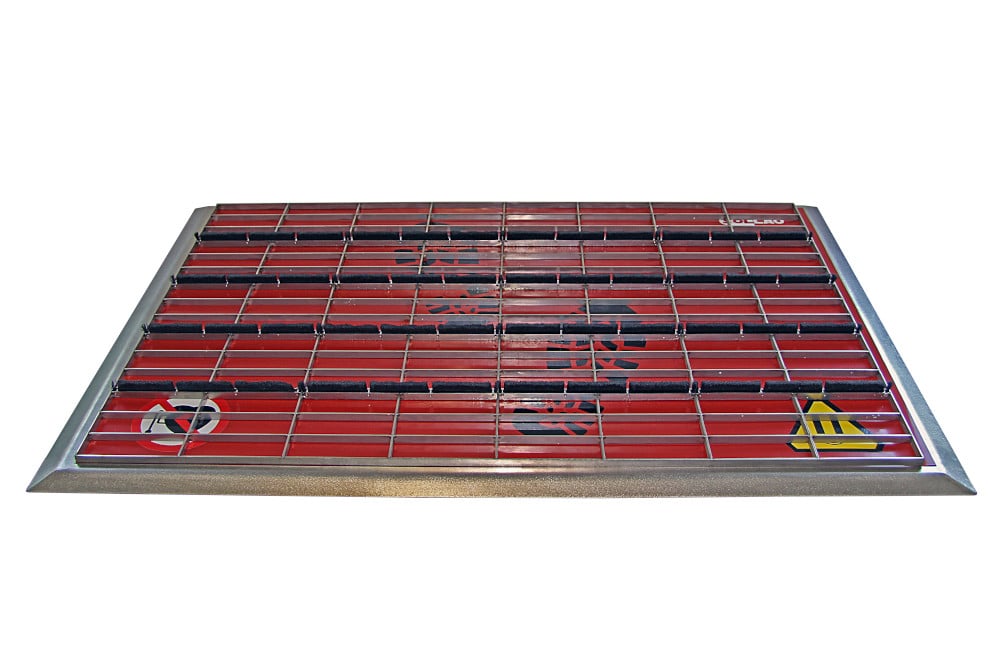 Създаденият по този начин високоефективна решетка играе ролята на грайфер, помага за механичното почистване на подметките от залепнали метални примеси (отпадъци от металообработка, стружки, пирони, винтове и др.), които дори най-силните магнити не биха могли да уловят.